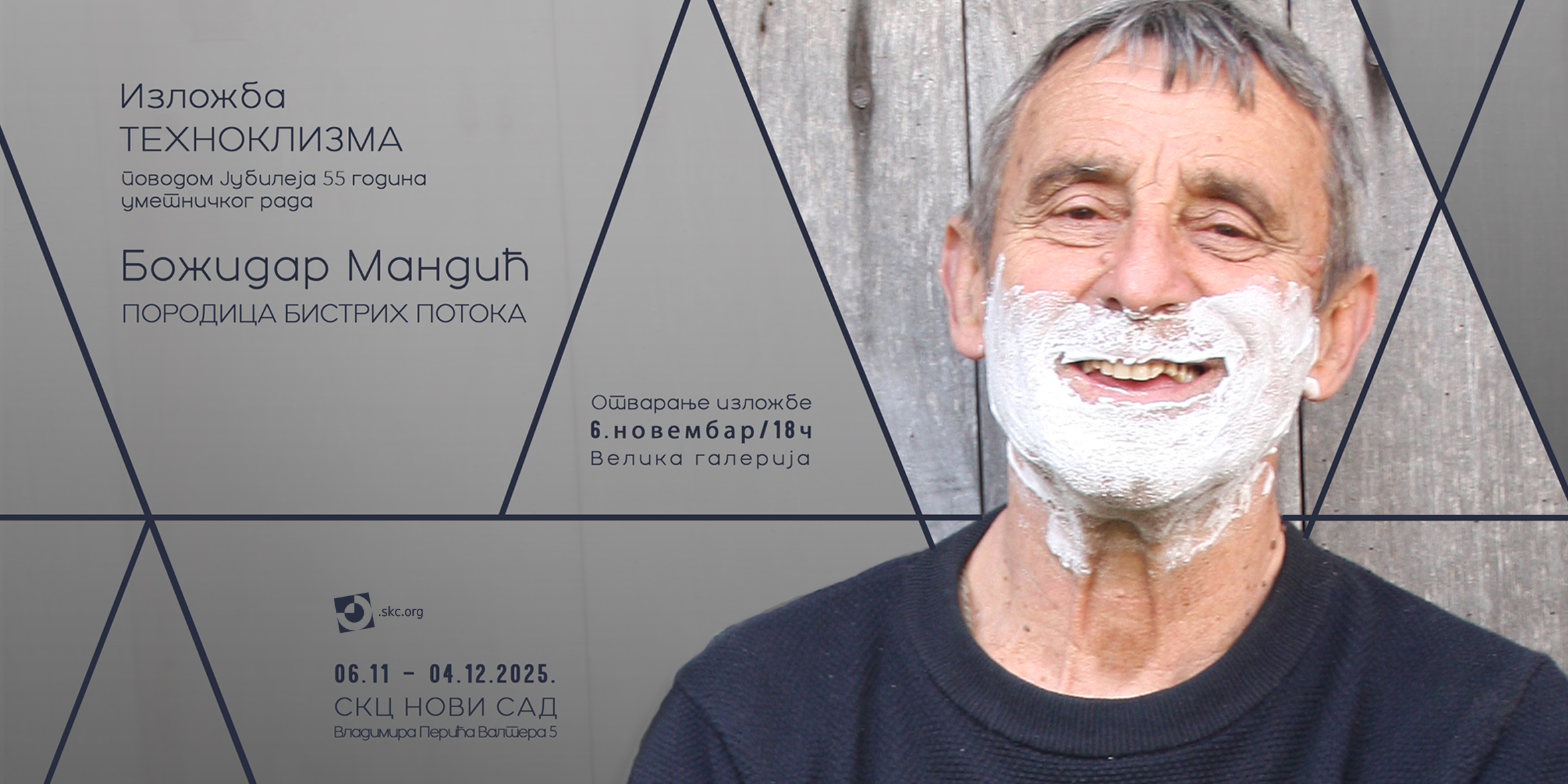 Изложба Божидара Мандића „Техноклизма“, којом се обележава 55 година уметниковог стваралаштва и рада Породице бистрих потока, биће отворена у четвртак 6. новембра 2025. у 18 часова у Великој галерији