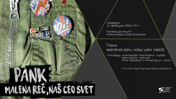 Промоција књиге Александра Саке Блажина „Панк – малена реч, наш цео свет” одржаће се у четвртак 12. фебруара 2026. у 19 часова у Kлубу СKЦНС-а (Владимира Перића Валтера 5).