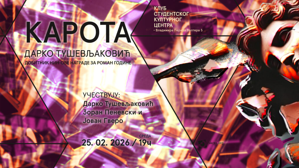 Промоција књиге „Карота” Дарка Тушевљаковића, добитника НИН-ове награде за роман године одржаће се у среду, 25. фебруара 2026. у 19 часова у Клубу Студентског културног центра Нови Сад (Владимира […]