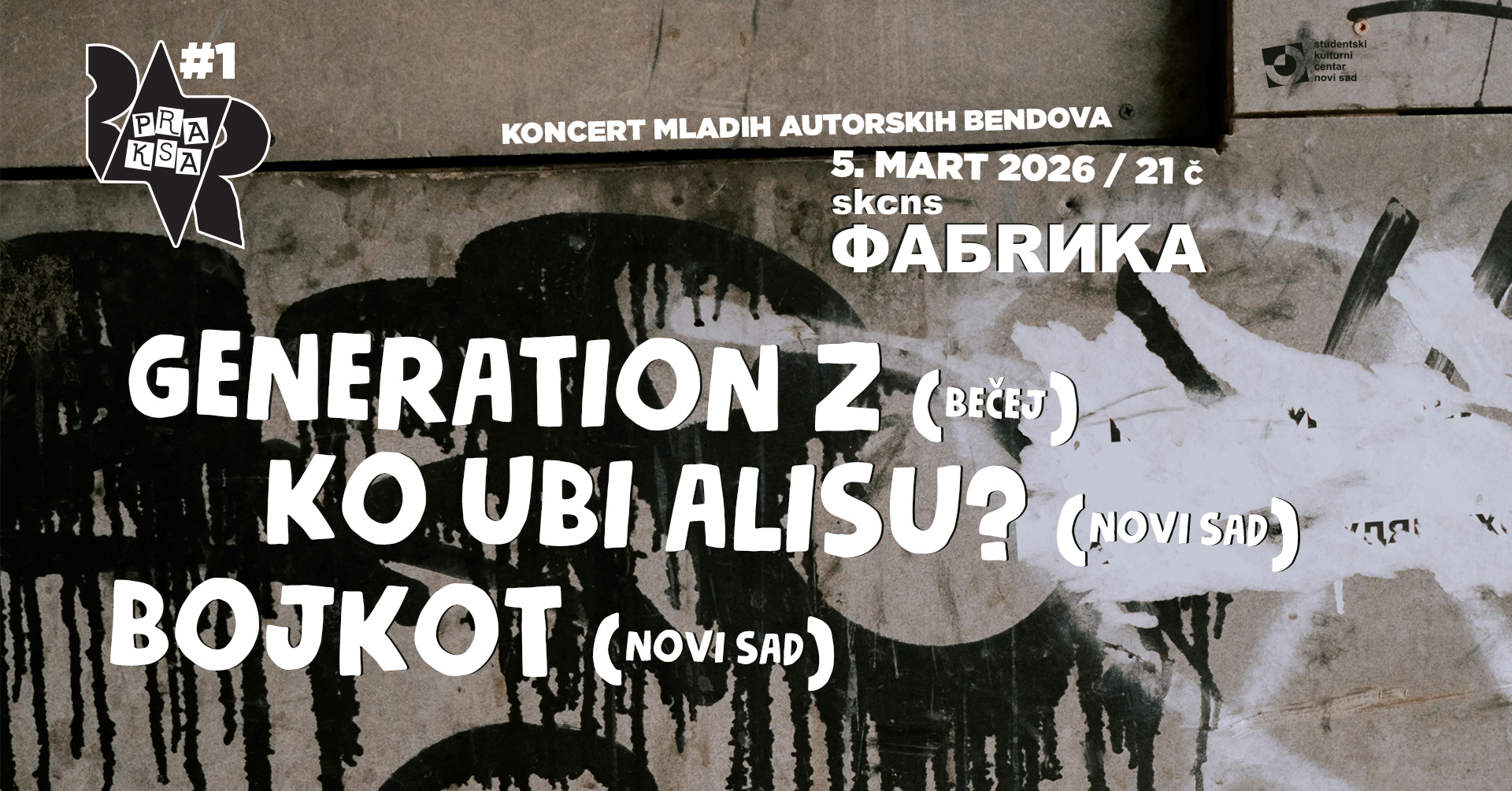 Prvi koncert u sklopu programa R’n’R Praksa: Generation Z, Bojkot i Ko ubi Alisu? 5. marta u SKCNS Fabrici